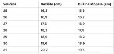 Uputstvo za merenje stopala