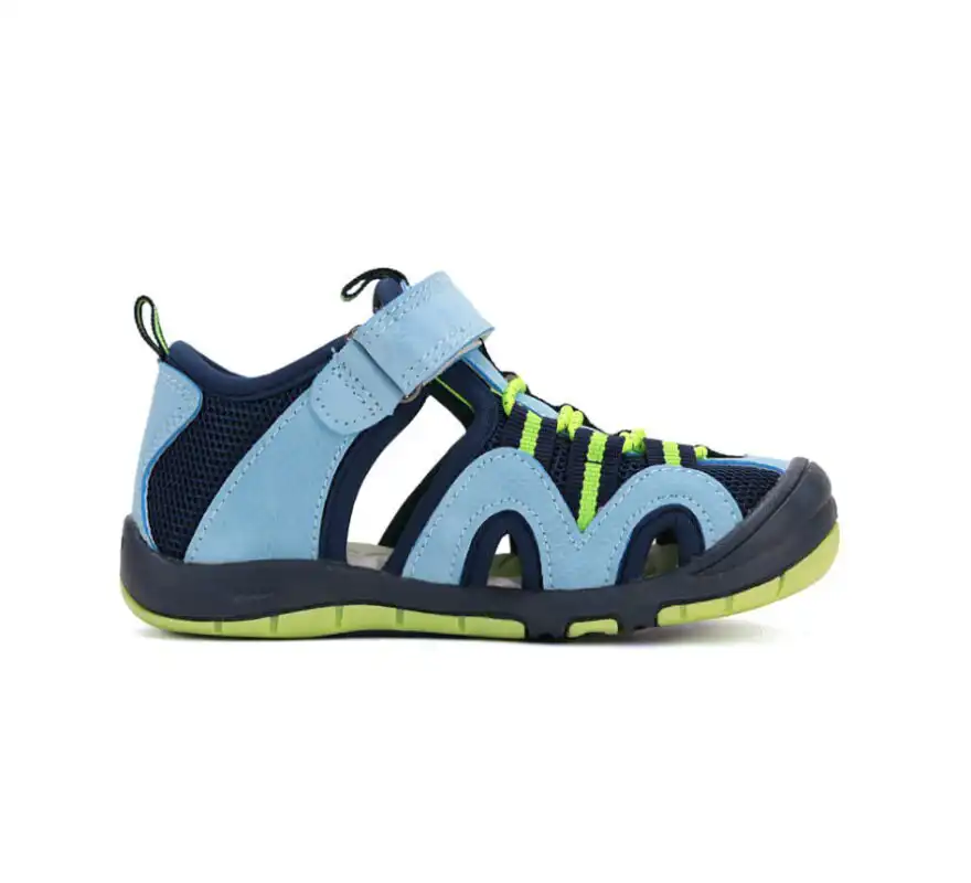 Model sandala, sa zatvorenim prstima, zatvorenom petom i uključujući dva podesiva čičak kaiša za dodatnu praktičnost. AIR bag sistem u đonu dodatno poboljšava amortizaciju udaraca, čineći ih idealnim za aktivne mališane, takođe smanjuje pritisak na stopala, zglobove i kolena. Sandale su dizajnirane s fleksi zonom, koja omogućava prirodnije kretanje stopala i veću pokretljivost, što doprinosi udobnosti i podržava prirodan hod.